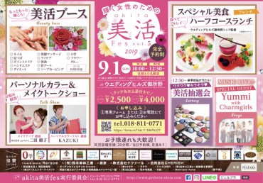 今年も開催✨ 今年で5回目となるakita美活fes。 秋田の輝く女性のためのオトナのイベントです♡ プロによる、美ブースを回り美しく、健康に、 自分磨きを実現します。 ワクワクする素敵な会場で、ウエディングヒルズ御所野シェフ監修、美活特製 美と健康に繋がるハ…
