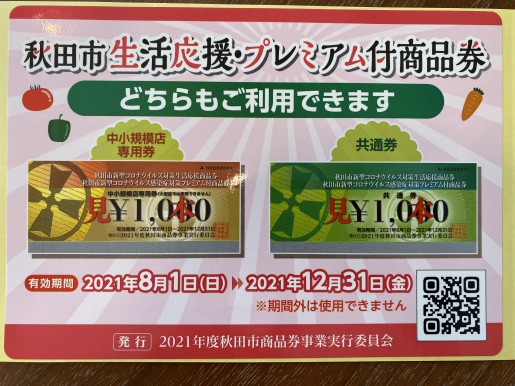 【秋田市生活応援・プレミアム付商品券対象店舗です】