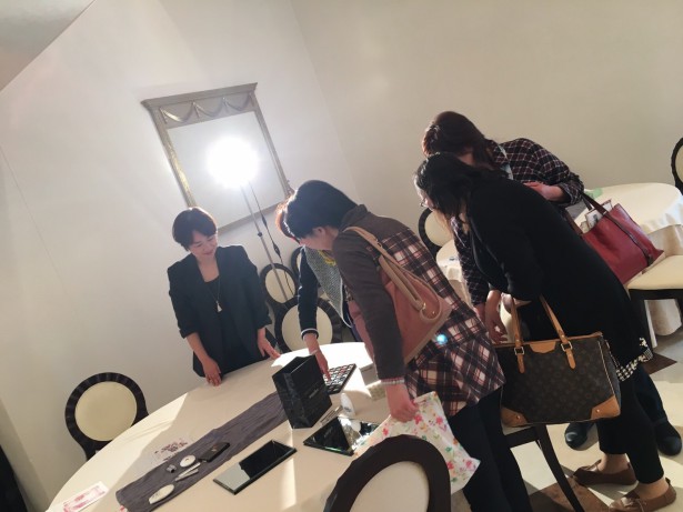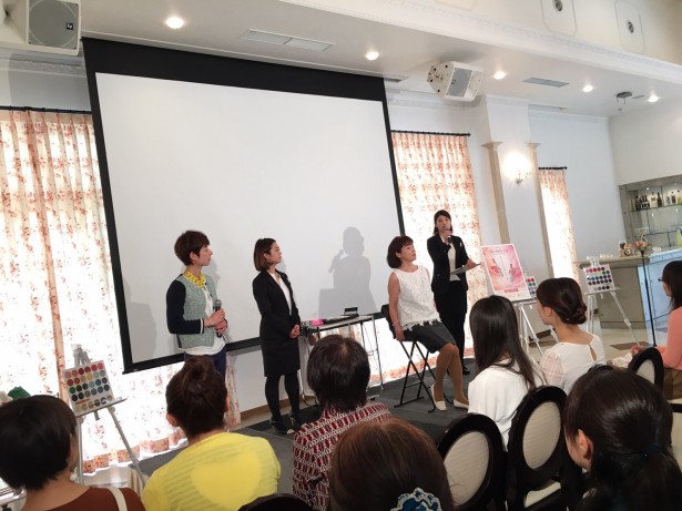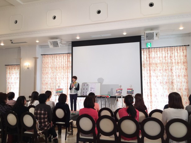 色についてお勉強☆やはりプロの方から色のお話を聞けるだけあって、本当におもしろいお話ばかり!!色に秘められた魅力を聞いた後に、カラーレッスン+メイクレッスンのコラボ企画!!色のことを踏まえた上で聞くメイクは、本当に奥の深い内容でしたヽ(*´∀`)ノ