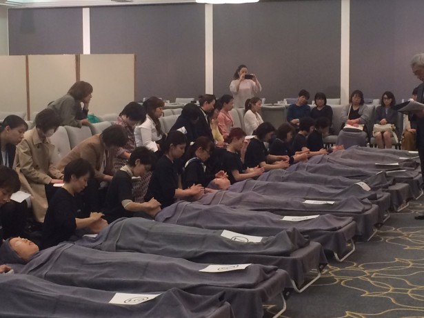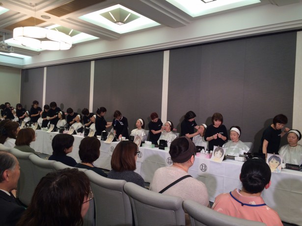 昨日、イヤタカ本館・ボストンホールにて、代理店さんの技術確認会がありました♪日頃サロンで行われているエクスフォリエーション(角質ケア)とメイクの技術を確認する大会だったのですが、東京から社長、専務、常務がいらして審査!!