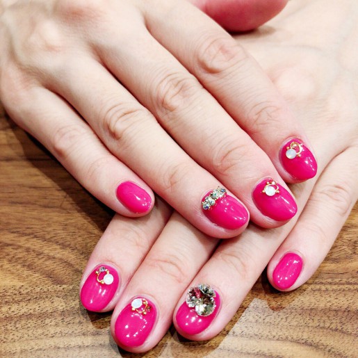 ビビットピンク♡ストーンの存在感を出し、重さのあるネイルに♡