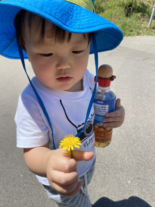 たんぽぽを掴んで、ママにあげようという優しい感情。 お花が可愛いねと言える想い。