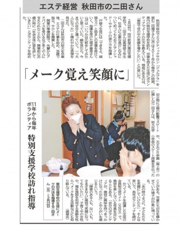 【秋田きらり支援学校】 先日、秋田きらり支援学校にメイクボランティアに行ってきました。 秋田魁新聞、 @akita_sakigake 秋田きらり支援学校のHPにも ジェルブラ活動を掲載頂きました。 http://www.kagayaki.akita-pref….