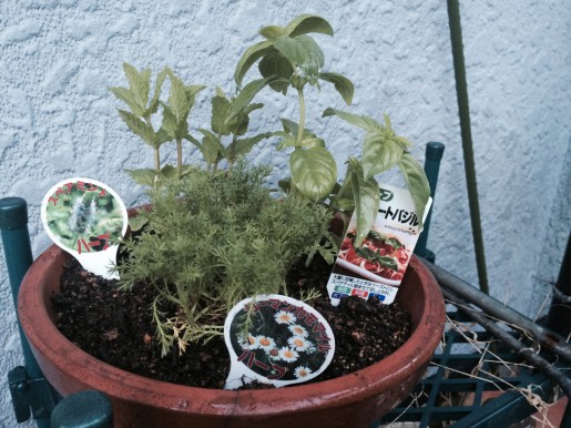 左からペパーミント、ローマンカモマイル、スイートバジルです!