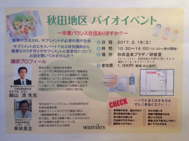 来月18日に健康にキレイになるためのお話が聞けるイベントが、秋田温泉プラザで開催されます☆何かしらのサプリメントを飲まれている方が増えてきている時代。みなさん健康で生き生きとしていたい思いからサプリメントを飲まれているのではないでしょうか?