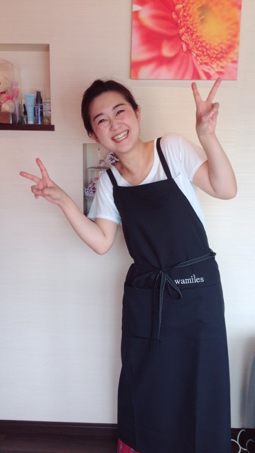 みなさんこんにちは!スタッフ渡部です(*゚▽゚*)今日も暑いですね… そんな今日も朝からお客様に続々といらっしゃっていただきました♪実はお盆明けからサロンのエプロンが新しくなったんです☆左ポケットに「wamiles」の刺繍が入ったNEW エプロン…