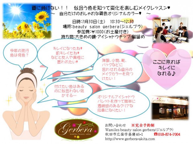 美活フェスの翌週になりますが、夏に負けない!!夏メイクをポイントにしたメイクレッスンを行います!